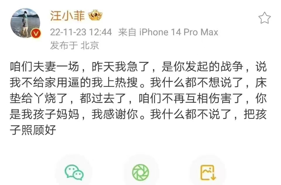 汪小菲的第一条微博:“我对孩子毫无保留!过去一年的汇款记录我都有,只是我现在不想再给他们交电费了!”