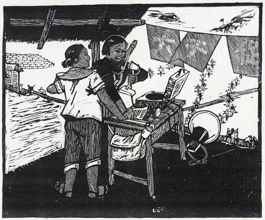 在农村我画了不少速写,创作了反映知青生活的版画七张,分别是《挑战水库》、《学插秧》、《宣传员》、《养猪姑娘》、《赤脚医生》、《农技员》、《拖拉机手》。农民对我的画很喜欢,看了觉得稀奇。这些被拔高理想化了的画,在一定程度上开启了他们的心灵和眼界,起码他们知道了眼睛看见的东西是可以用笔画下来的,眼睛没有看见而心里希望的“超现实”,也是可以入画的。