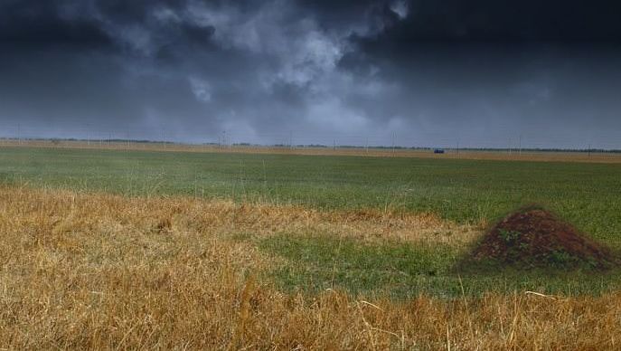 秋风阵阵,秋草散发着清香,放眼望去,天苍野茫哪里还有那座坟。老头不死心,终于在没膝深的秋草中判断出几道几乎淹没的车辙。这条通往旗里的土路已经废弃了十几年了,车辙上面也长出了草,但瘦小短矮。仔细看,草的颜色还是比其他地方的淡。就是凭着区别出草的颜色他才辨认出四十多年前这条土路。