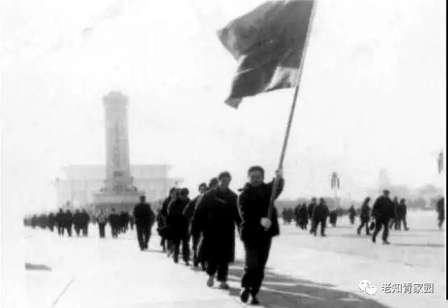 知青队伍并没有直接了当地闯进广场而是先绕场一周,也就是招摇过市的意思,然后越过革命历史博物馆西面的空地,登上纪念碑南侧台阶,抢占制高点。
