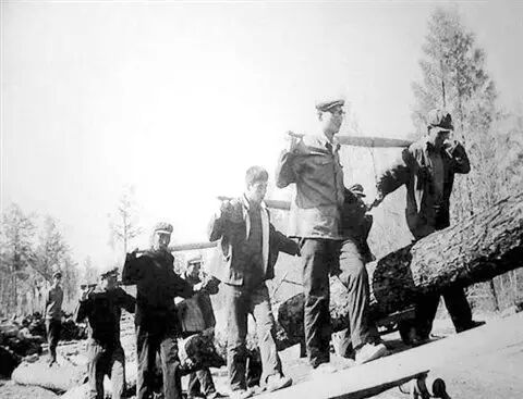 未去北大荒前,看到、想到的最大的木头,就是电线杆子了。但那和我们所抬的木头相比,只能是名副其实的“杆子”。我们抬的木头,原是兴安岭上的参天大树。被伐倒以后,要截成8米的楗子三根还有余。每根木头按小头检尺,体积最小也在1立方米左右,重量最少也在800公斤左右,大的就不用说了。这么大的木头,归楞(即把散乱的木头整齐地堆成一堆),装卸车船,都要用人来抬。其难度、强度和危险程度,不身历其境是难以想象的。惟其如此,它也才叫人“别有一番滋味在心头”。