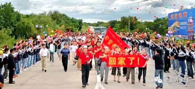 回访团到达的当天,早在车队离抚远还有两小时车程的时候,抚远县五大班子的领导就率领着庞大的欢迎队伍到25公里外的寒葱沟等待我们,期间还遭遇了一场大雨。说来也怪,回访团的车队一到,乌云密布的天空顿时云开雾散、阳光灿烂,刚下车的代表们顷刻间就淹没在鲜花、气球、彩旗和欢呼的海洋中。我走在队伍的最前面,在我身后是知青们拉起的一条横幅,“回家了!”寥寥三个大字表达了我们所有知青此刻的心情。车队开进县城,亲情扑面而来。从南山牌楼到黑龙江边,彩旗飞舞,鞭炮齐鸣,自发前来欢迎的群众夹道欢呼,锣鼓喧天,几十支秧歌队载歌载舞,前呼后拥,挤满了整条大街……接下来的六天里,整个抚远县被亲情的泪水淹没。在车站,在宾馆,在村头,在路旁,回访团所到之处随处可见一对对、一群群相拥而泣的身影。此时此刻,那种少小离家老大回的别苦离愁,那种揪得你心疼的魂牵梦萦,那种久别重逢的喜极而泣岂一个“泪”字了得!