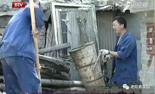 每个人背了十几桶后,第一车装满了,司机马师傅去卸粪。樊班长就带我到附近的大杂院看看那里的公共厕所。每进一个院就跟走迷宫似的,绕过各种煤堆,板房,到了院子尽头,对着一个铁皮钉的破门,樊大喊一声:“里面有人吗?”没人答应,他就径直推开门,让我进去瞧瞧。