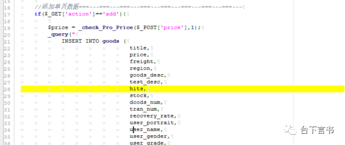 再继续跟到/admin/function/goods_carried1.func.php,因为这里是将表单中我们编辑的内容保存到数据库,所以对应的是一个insert。