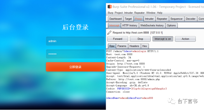 对比登录前后的cookie,其实只是多了一个“Aname=admin”
