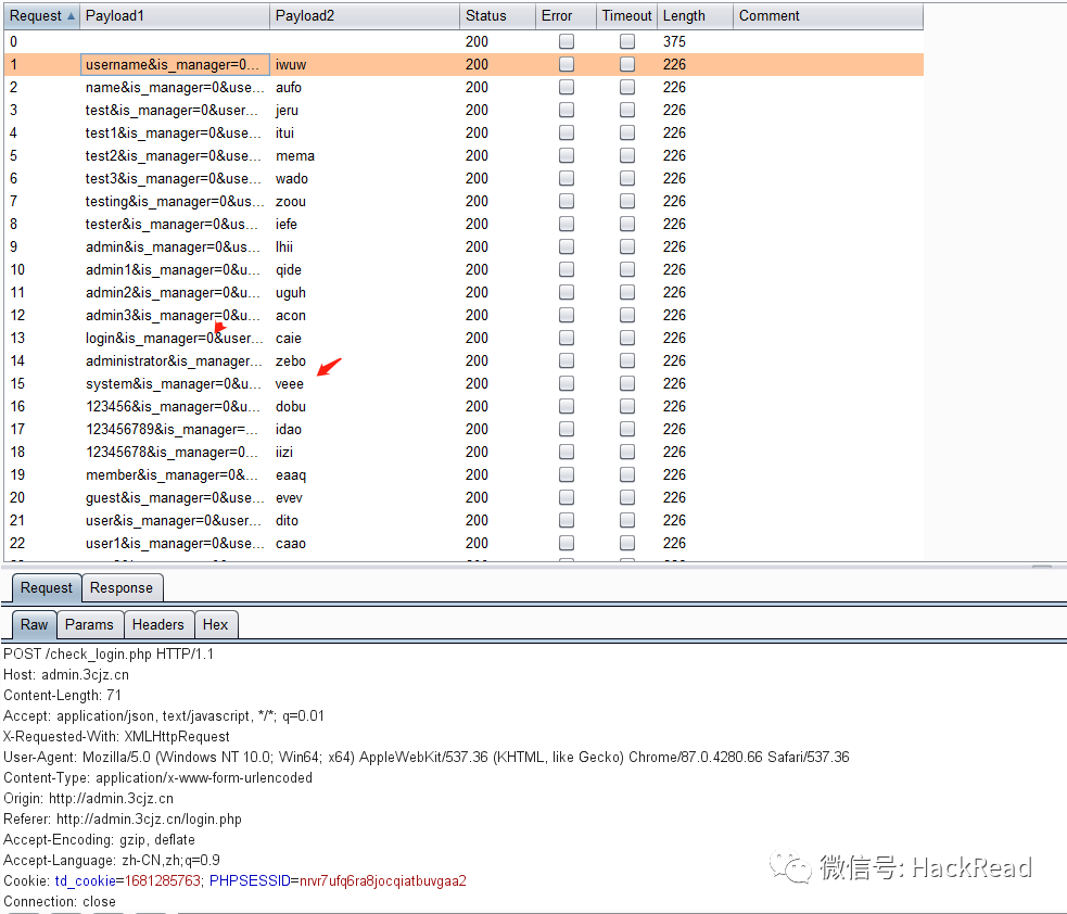 在该例子中,即 position 1为用户名,postion 3为密码。