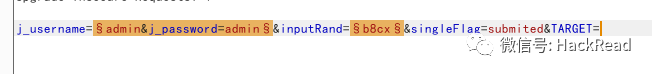 比如,已知系统存在一个用户admin,来爆破该用户的密码,插入点标记如下