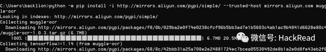 python3 -m pip install -i http://mirrors.aliyun.com/pypi/simple/ --trusted-host mirrors.aliyun.com muggle-ocr