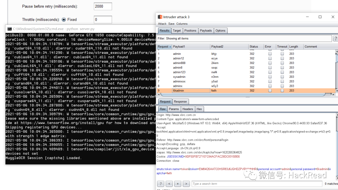 2.浏览器输入网站登录页面,输入用户名和密码以及验证码,然后通过buspuit获取数据包