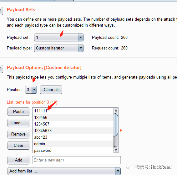 payload 1 使用“自定义迭代器(Custom interator)”。并在迭代器中组合用户名和密码。