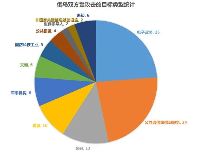 图3 俄乌双方受网络攻击的目标类型总数统计