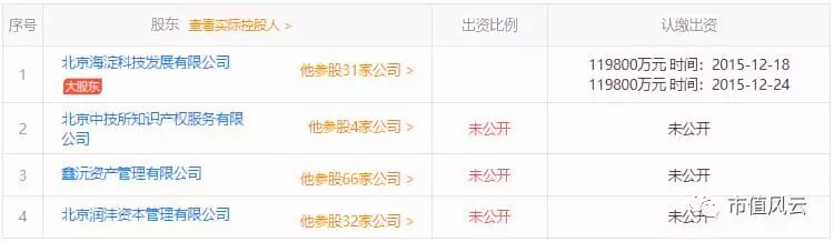 北京海淀和北京润沣合伙成立北京润丰财富投资中心,这家公司很重要,主要为三聚环保的客户提供股权质押,后面关联抵押里再提,这里的股权数据全来自天眼查。