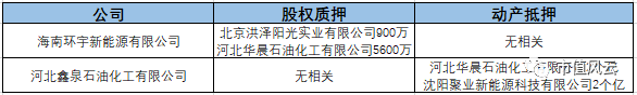 河北鑫泉石油化工有限公司动产质押给了河北华晨石油化工有限公司和沈阳聚业新能源科技有限公司,后者是三聚环保控股的关联公司。