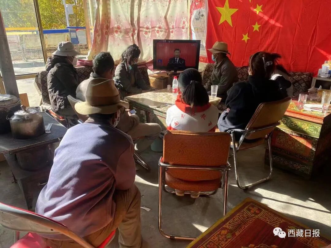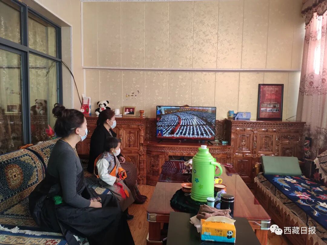 拉萨市曲水县驻热木其党员先锋服务队收看开幕会盛况。
