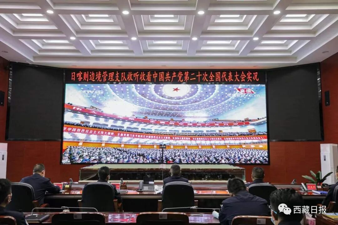 西藏出入境边防检查总站日喀则边境管理支队组织干部职工收听收看开幕会盛况。西藏出入境边防检查总站日喀则边境管理支队供图