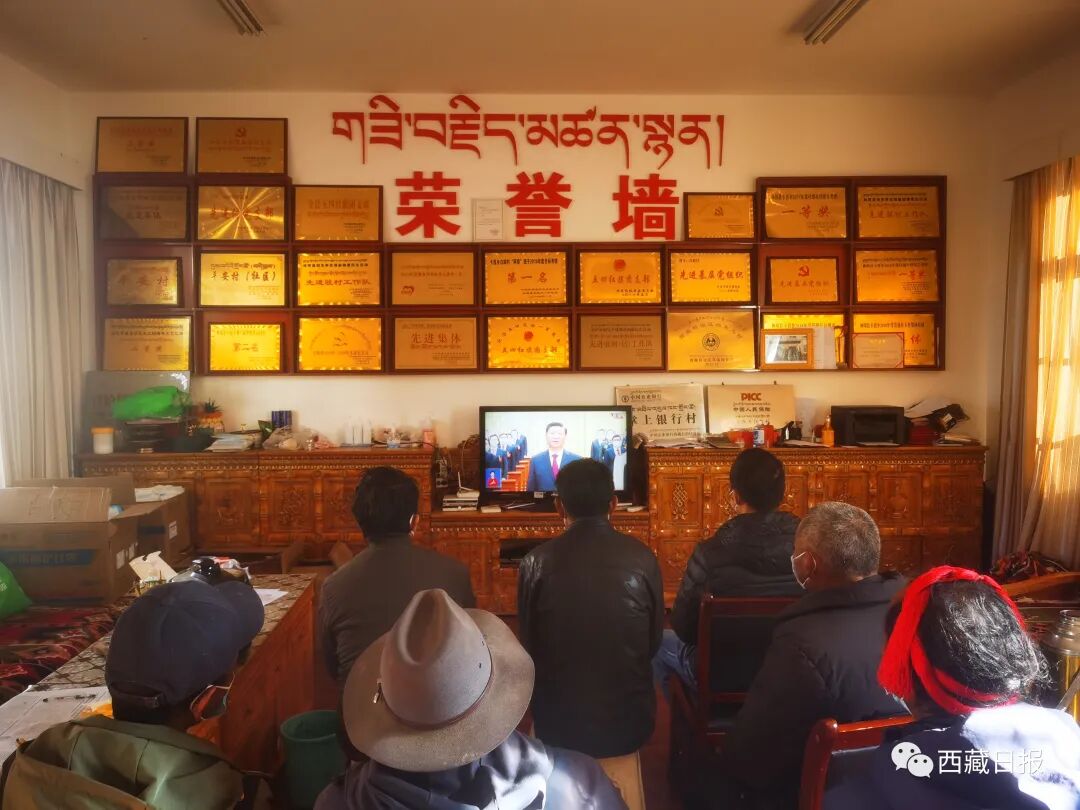 林芝市波密县扎木镇康木村党员群众在收看开幕会盛况。