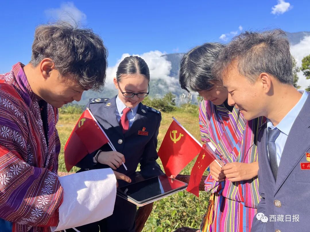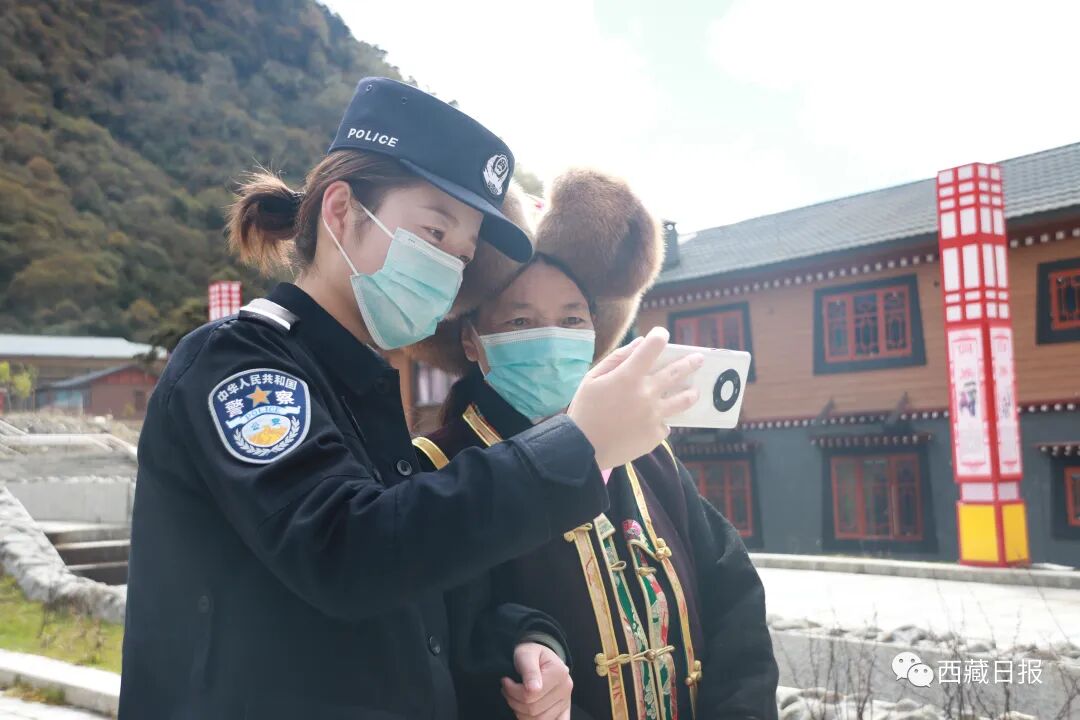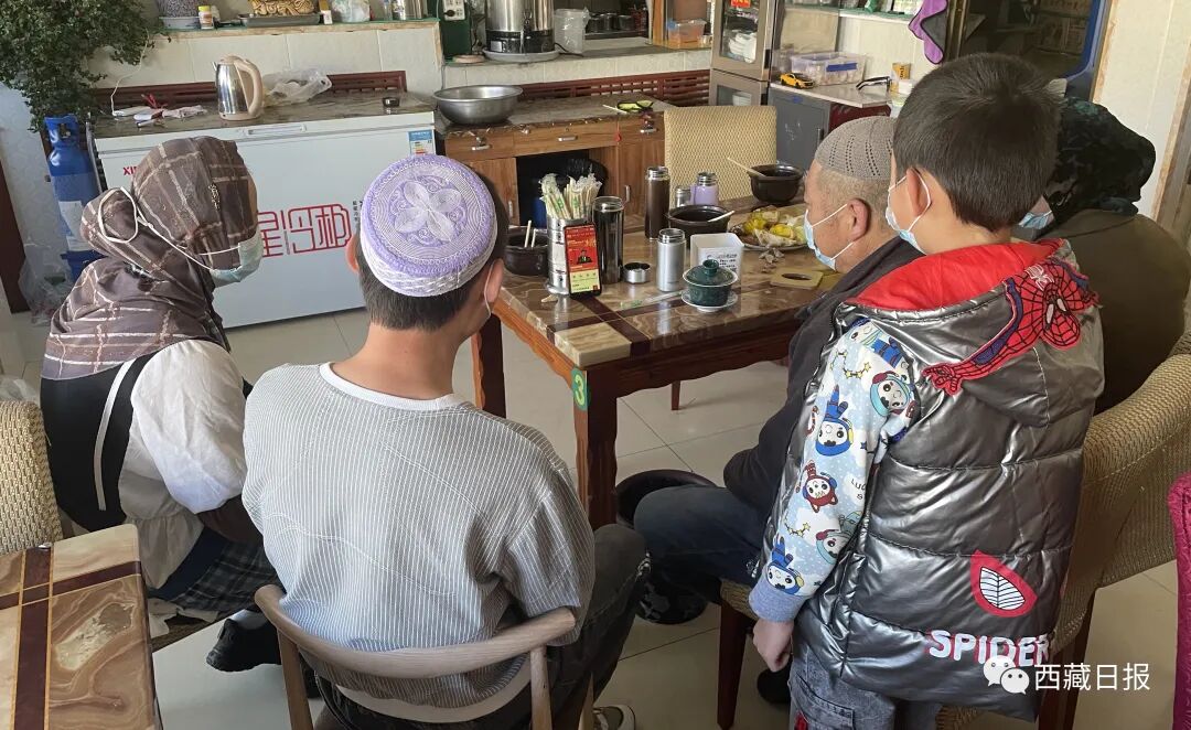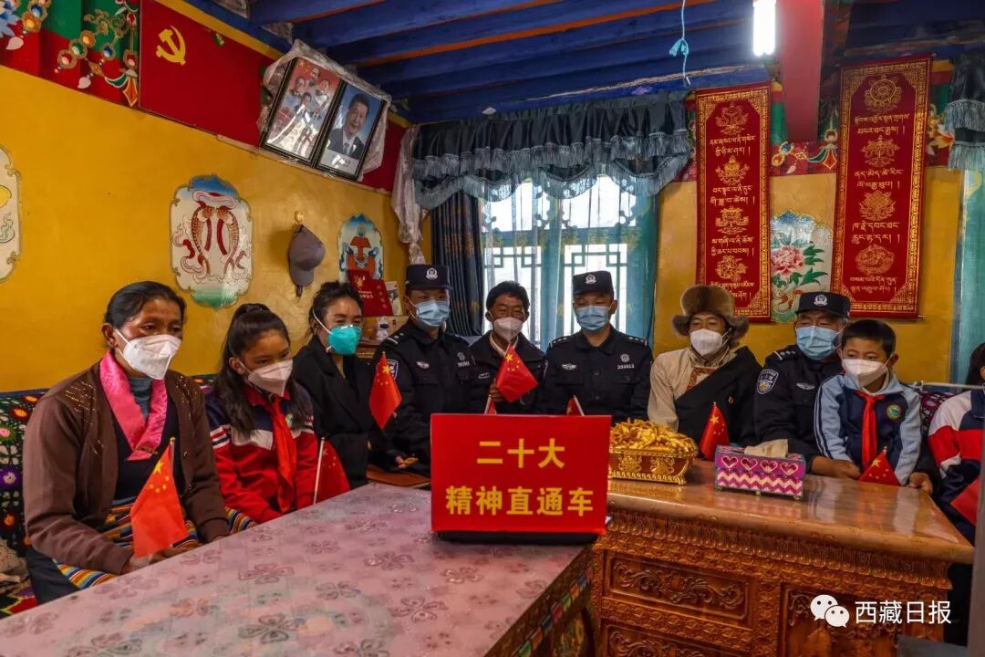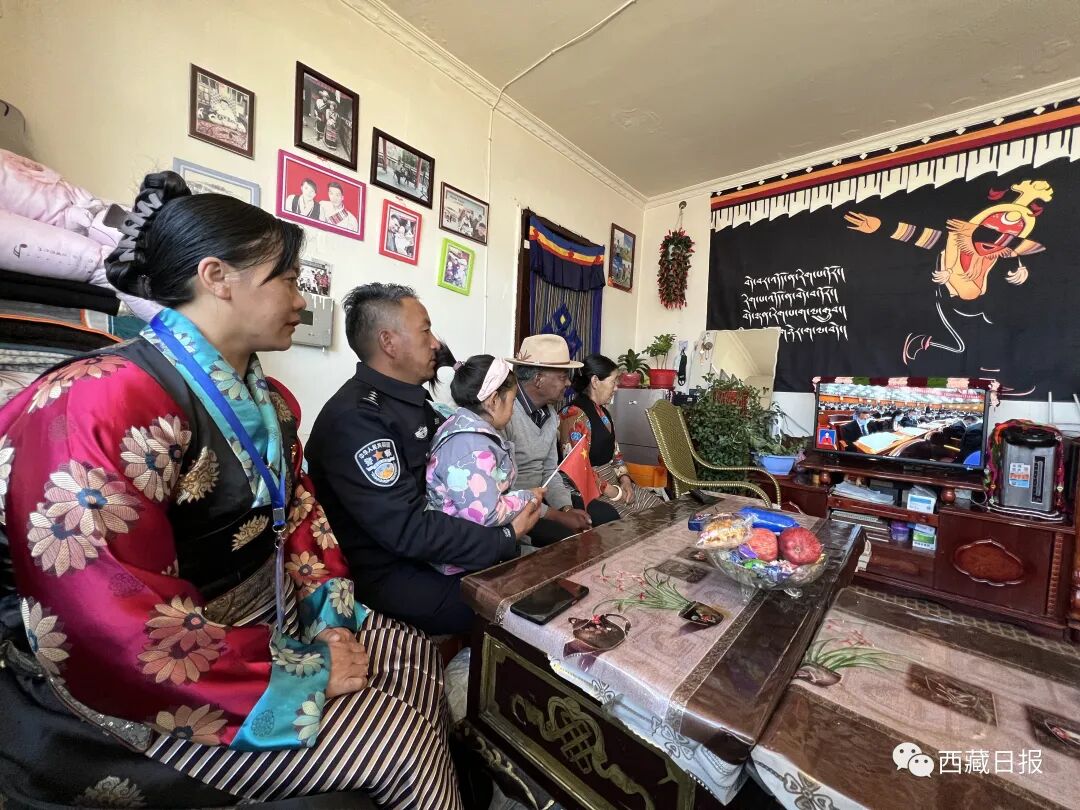 西藏出入境边防检查总站日喀则边境管理支队贡当边境派出所民警与辖区老党员尼玛普布一家人一起收看开幕会盛况。西藏出入境边防检查总站日喀则边境管理支队供图