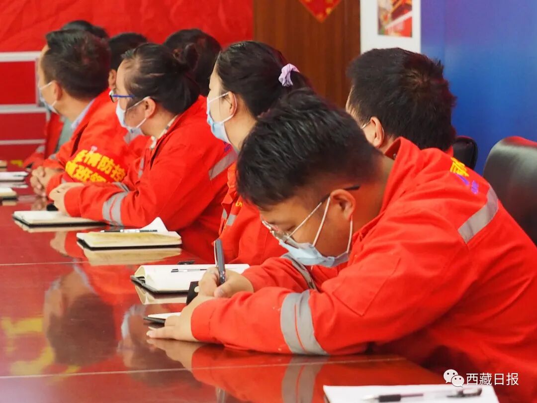 水电九局西藏公司拉萨总部组织干部职工收听收看开幕会盛况,认真学习做笔记。通讯员 肖洪腾 摄