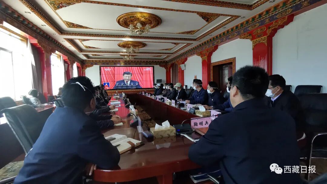 山南市错那县吉巴门巴民族乡干部群众集中收看开幕会盛况。
