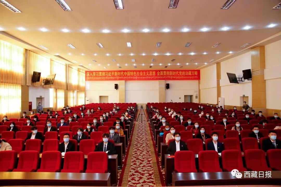 西藏藏医药大学党员干部集中收看开幕会盛况。西藏藏医药大学供图