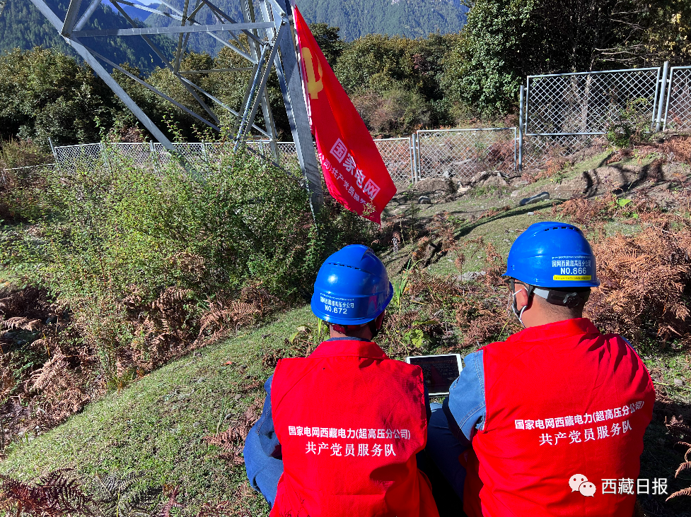 国网西藏超高压公司林芝运维分部线路保电人员收看开幕会盛况。通讯员 杨操 记者 拉巴桑姆