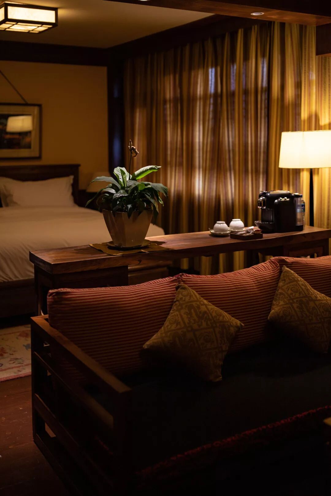 ▲ 此行松赞的所有酒店里,在“内饰”上最为考究的,当属位于香格里拉的松赞绿谷山居。作为松赞“店龄”最长的酒店之一,这里的很多内部细节留有松赞创始人白玛多吉强烈的个人风格。