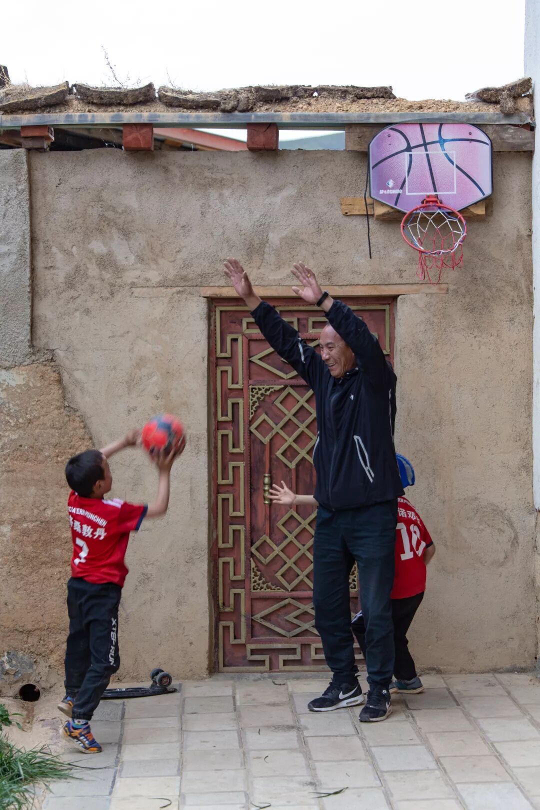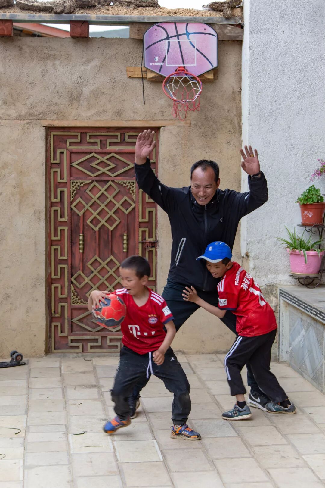▲ 旅程进入最后两天。松赞景区内的香格里拉藏民家,我们去老乡家蹭吃的。进院就看见一场NBA总决赛直播:卡哇伊伸开超长臂展和大手展开防守,阿水为阿花奉献了高位挡拆,阿花利用挡拆就是一个转身过人,并最终迎着防守完成了急停跳投!……
