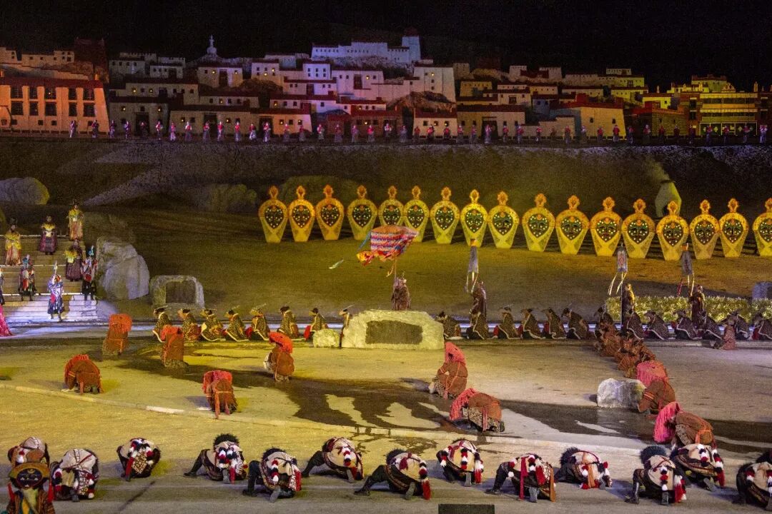 ▲ 整个舞台的层次感很强,演员阵容也是十分庞大。卓舞、藏戏、打阿嘎,各种藏族特色元素纷至沓来。