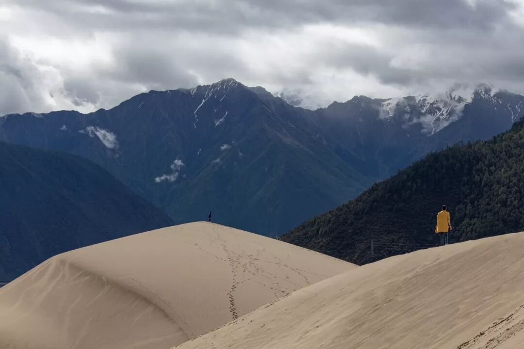 走在海边一样质感的沙土上,越走越高,往前看是白皑皑的雪山,往下一望是浑浊而缓慢的雅江,是一种十分混搭的视觉感受。