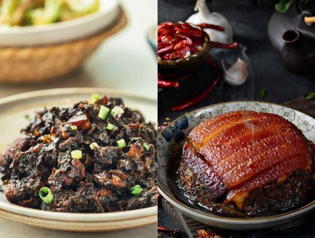 ▲ 左为浙派的梅干菜肉,右为川菜里的梅菜扣肉。左图摄影/学文映像 右图/图虫·创意