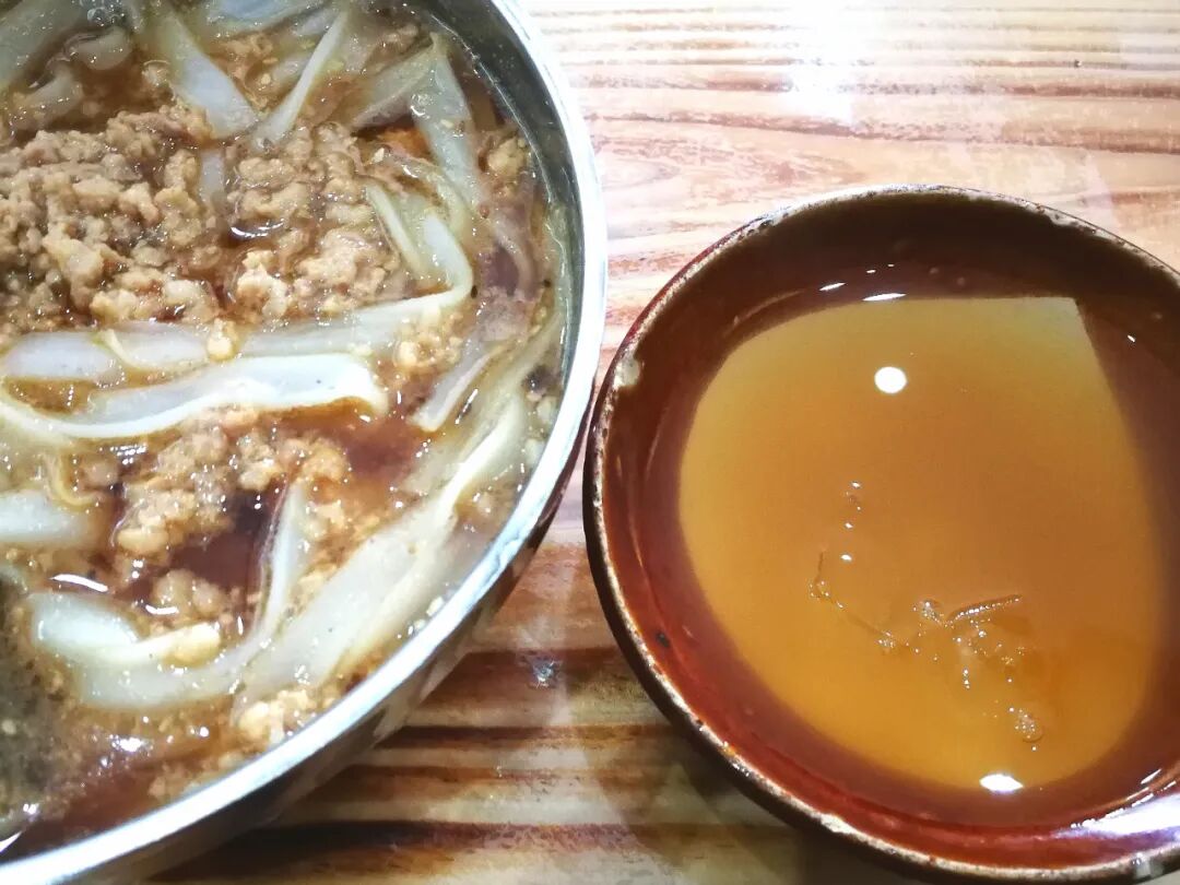 大理地区的饵丝更加软糯,尝起来很像年糕。这里的巍山𤆵肉饵丝,饵丝烫一下便很细软甜润,再盖上腊汁肉一般熟烂松软的𤆵肉帽子,搭配得恰到好处。