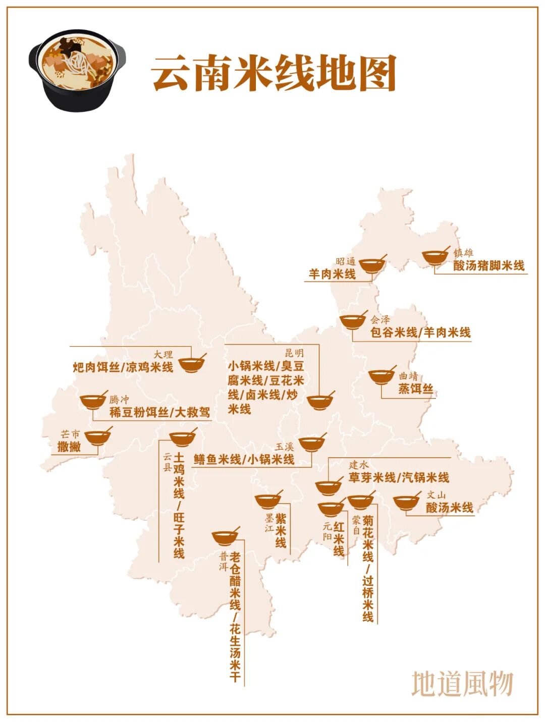 ▲ 云南米线地图。 制图/伍攀