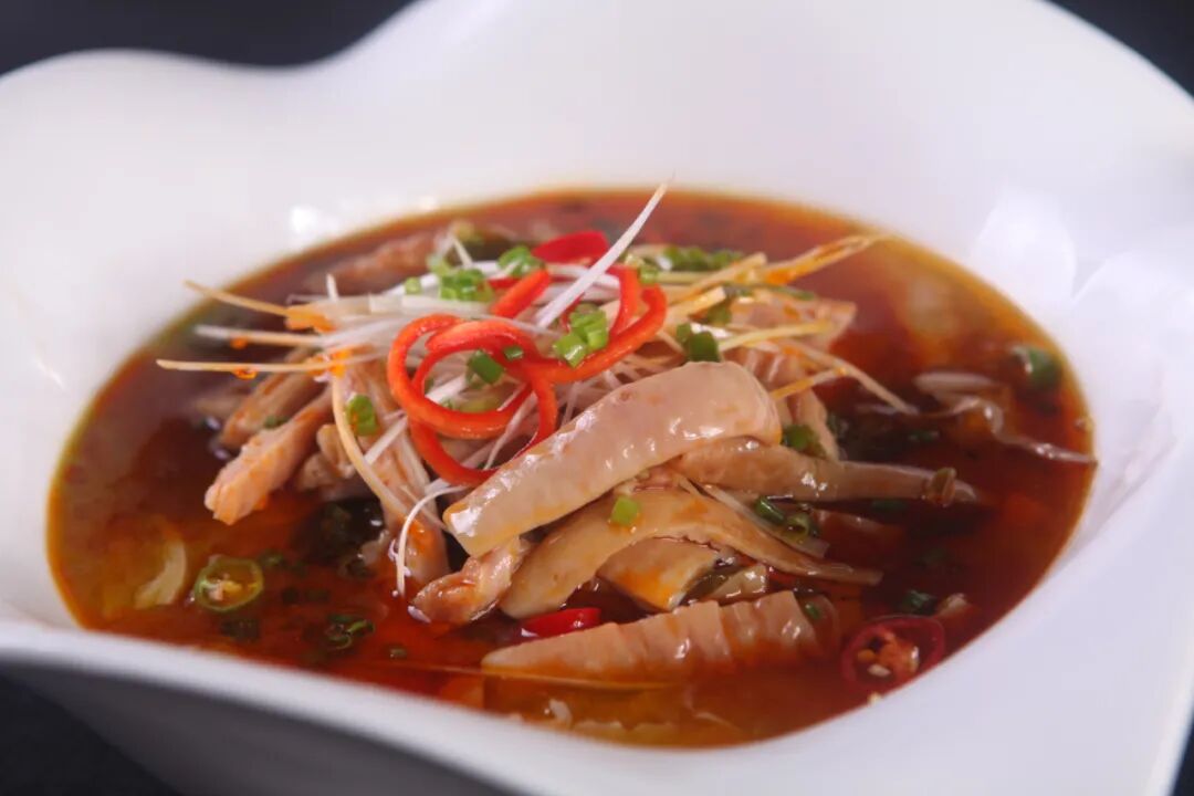 双流的蘸水肥肠也是肥肠中的一股“清流”。新鲜的肥肠用熬制的高汤捞煮入味,加入莲花白或豆芽等素菜煮熟,吃起来有一股鲜味。点睛之笔是秘制的蘸水调料,以豆瓣酱打底,加入各种川味调料,麻麻的,辣辣的,又有点香。