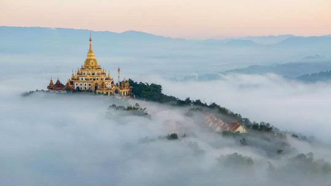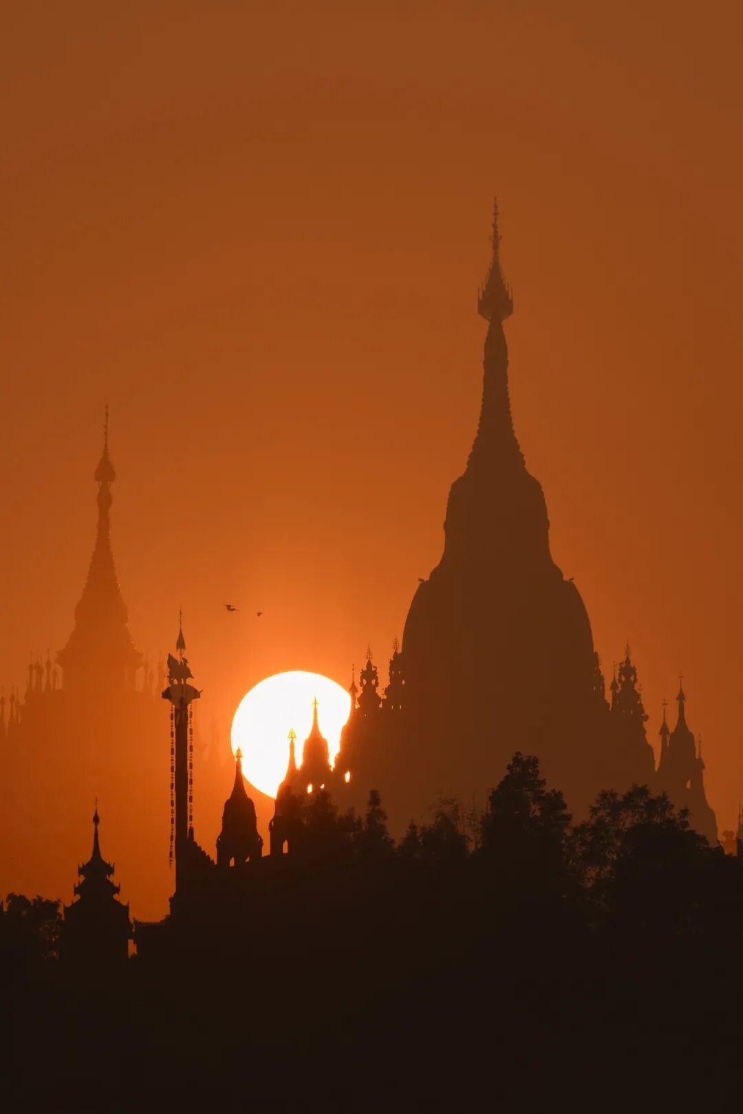 ▲ 笼罩在神秘日出下的勐焕大金塔。摄影/wzkDREAM 图/图虫·创意