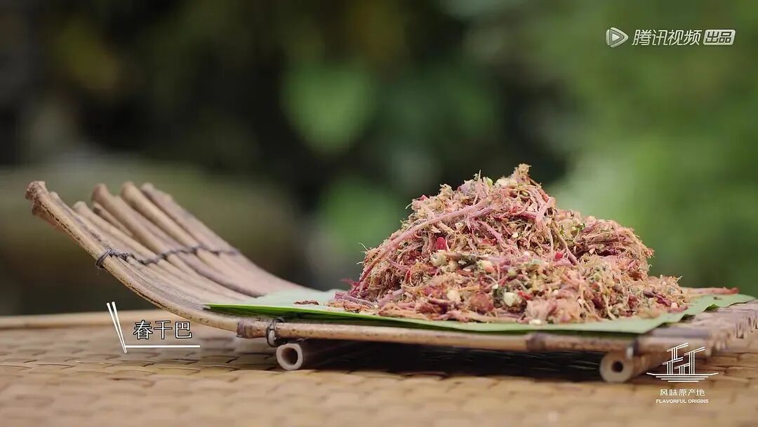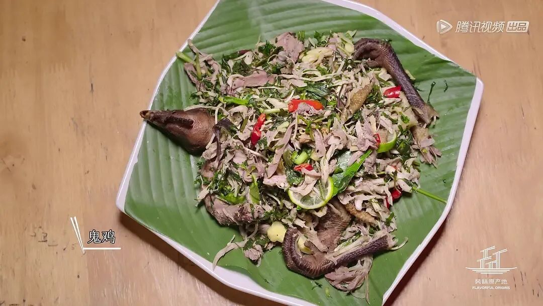 ▲ 上图 鬼鸡;下图 舂干巴。 图/腾讯视频《风味原产地·云南》