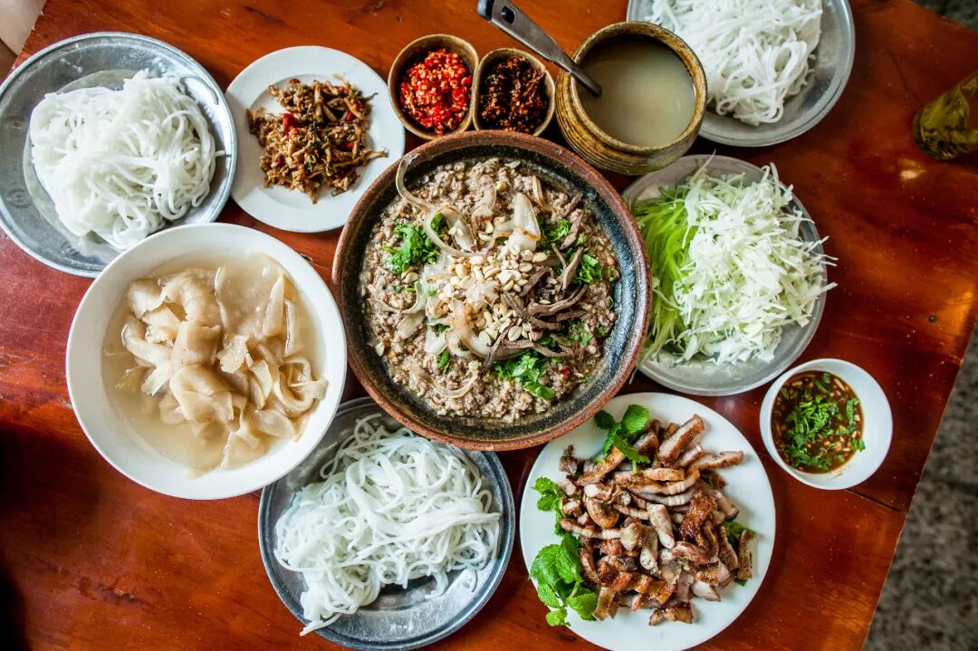 别看过手米线个头小,却已经是历经六百年浮沉的“老先生”了。这种时间的历练,让它的花样变得越发繁多。外地人若是在馆子里,对着老板喊一句:“来个全套!”,对方估计会一脸茫然地给你端上一份能铺满整桌的豪华套餐。