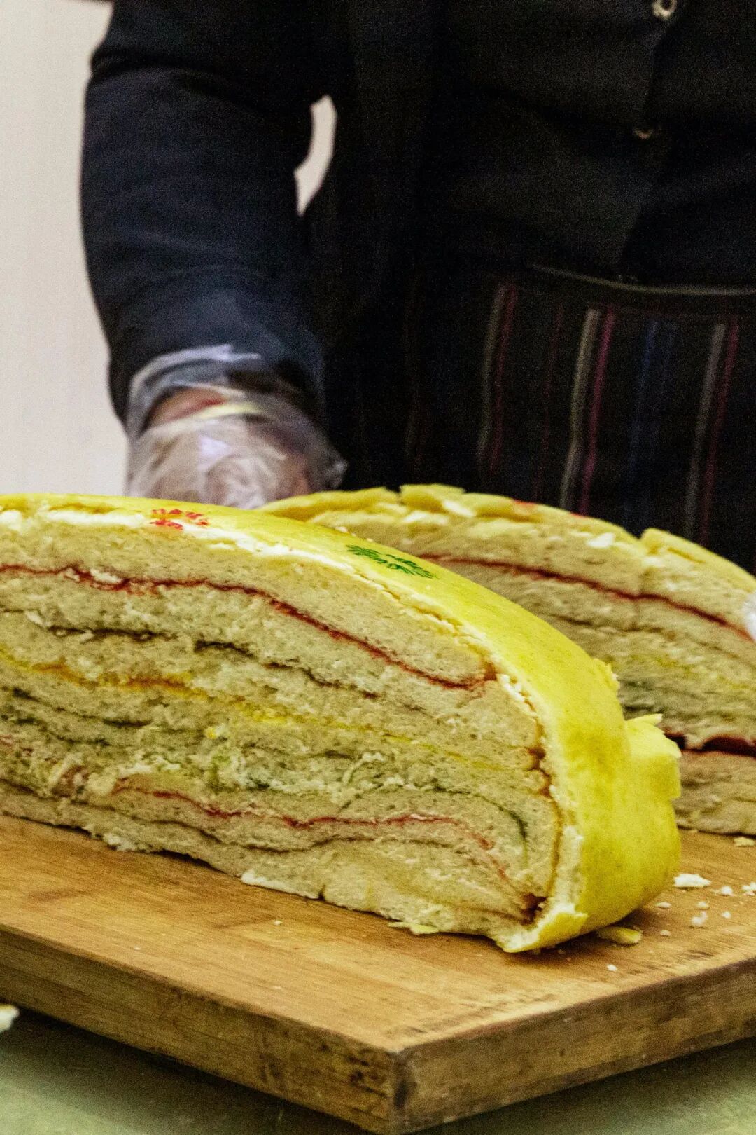 凉州的“三明治”,是肉夹子。腊肉片加猪肚丝,夹入高庄馒头,腊肉夹馍,份量管饱;凉州大月饼,以及切成大薄片的凉州凉粉也显得格外粗犷。除此之外,还有炒拨鱼、面皮子、沙米粉、转百刀,都是纯粹的凉州味道。
