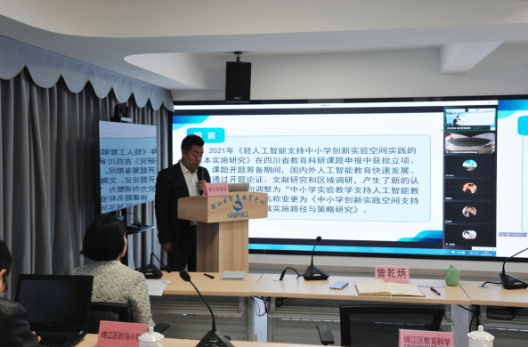 锦江区电教馆曾乾炳馆长做开题报告,七中育才学校和成师附小万科分校展示学校研究思路
