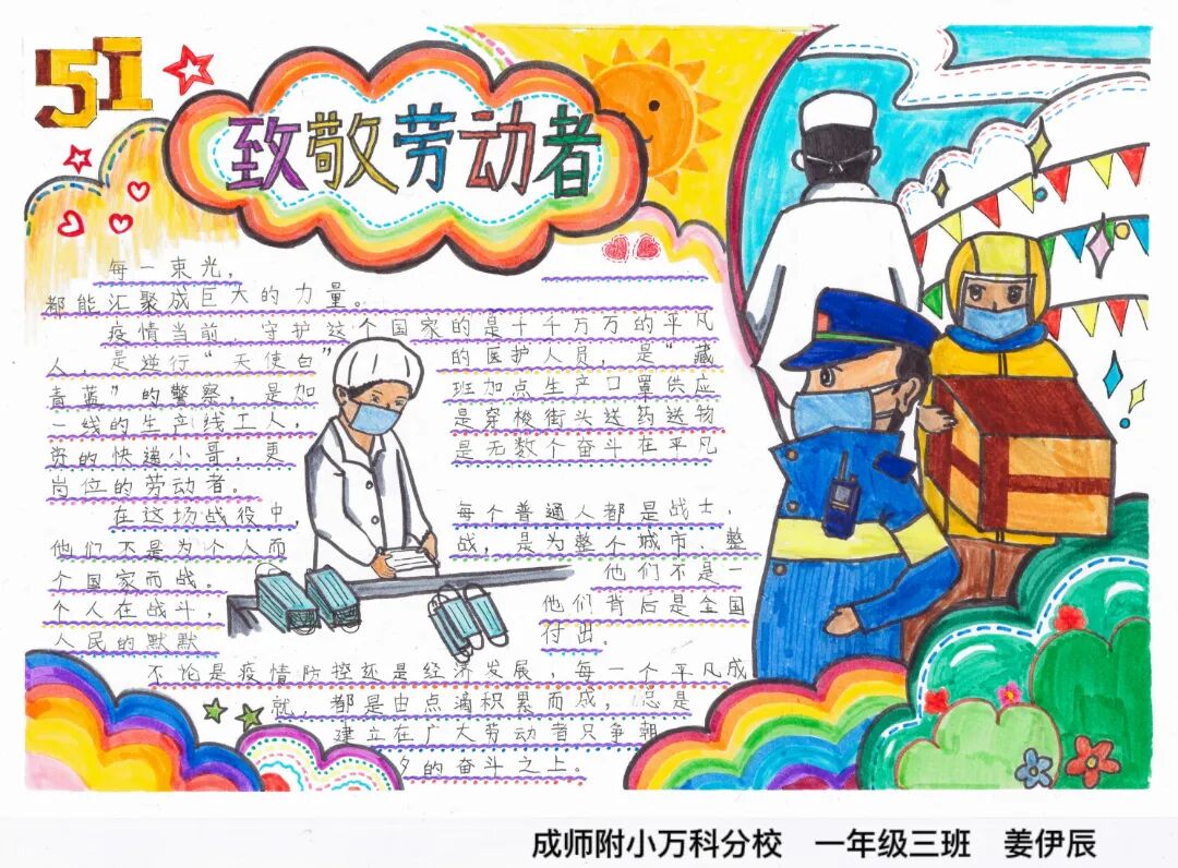 5月,是美丽的劳动者的季节!善于学习的同学们,在老师的指导下,在家长的帮助下,通过自己的海报、手抄报等作品,歌颂劳动,致敬劳动者。