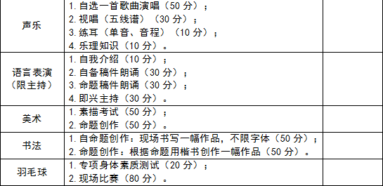 1.根据学校艺体团队建设的需求,对部分项目招生类别进行了细化。