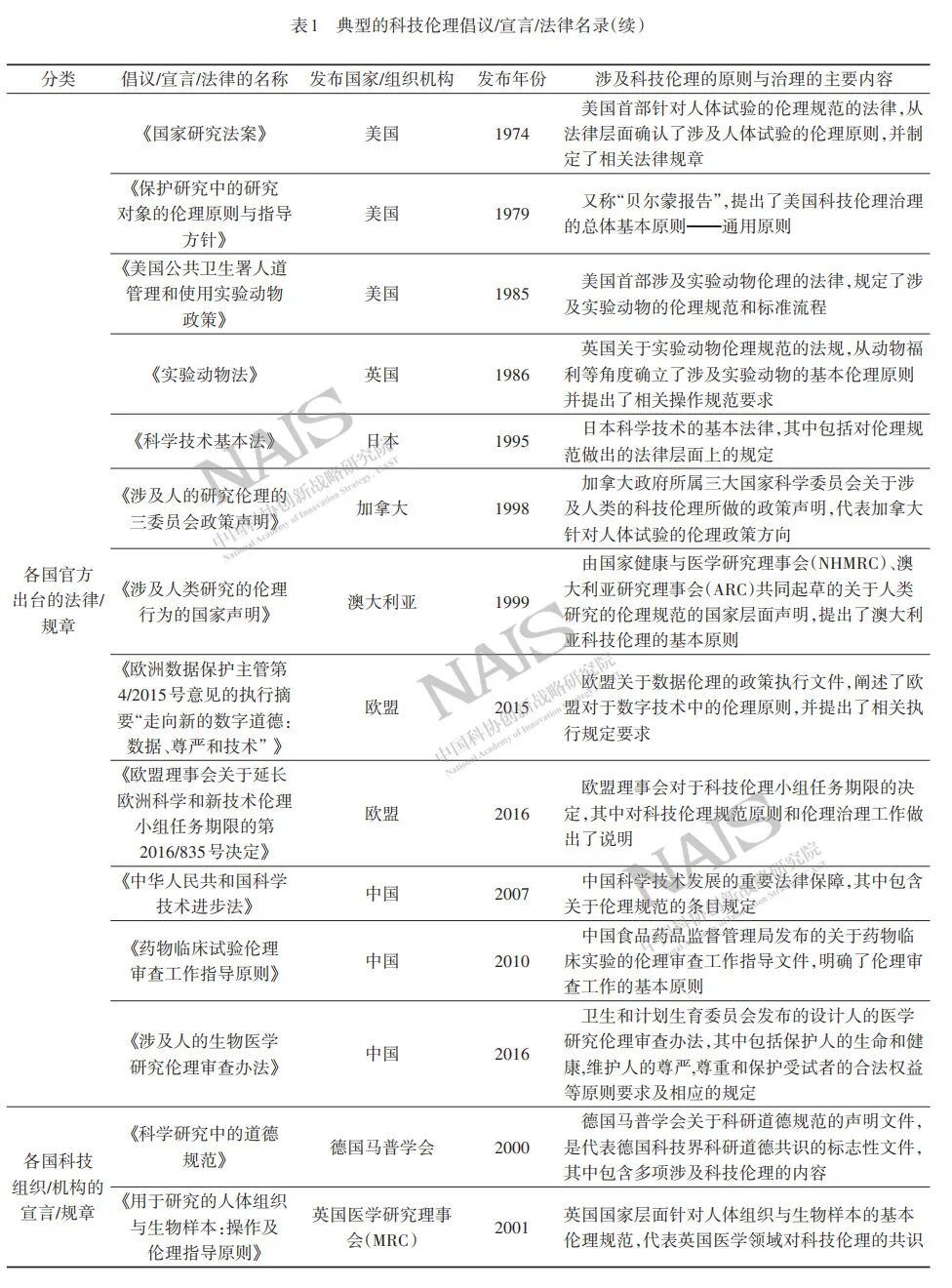 英国七大科学基金组织(RCUK)借鉴《贝尔蒙报告》与“通用规则”,联合颁布《科学家通用伦理准则》。德、加、日等国也先后出台相关法规政策,逐步建立和完善国家层面的科技伦理治理体系。