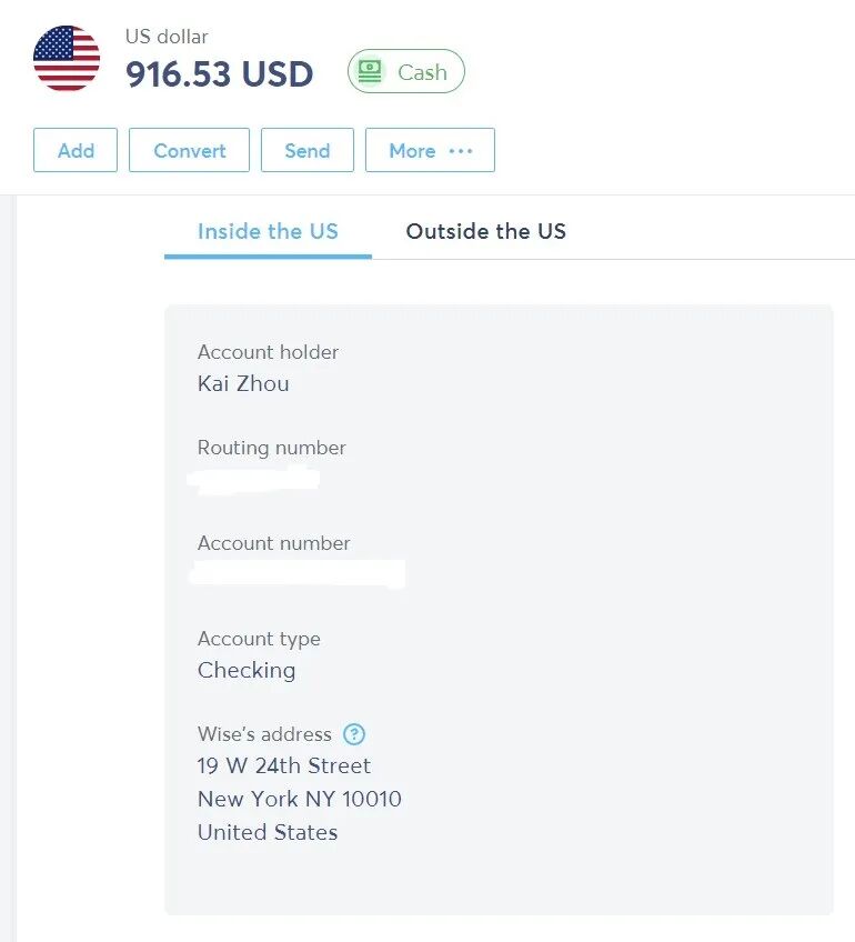 有了Account Number和Routing Number,登陆美运网银关联一下账户就可以还款了。当然你的Wise账户里首先得有钱才行,一般来说我是银行汇款到Wise的英镑账户(免费),然后再转至Wise的美元账户(换汇手续费约千分之三),手续简单成本低。