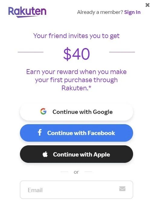 欢迎大家使用我的推荐链接注册Rakuten,九十天内消费满一定金额我们双方都可以获得推荐奖励(此文发稿时为消费满$40返现$40)。