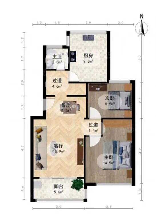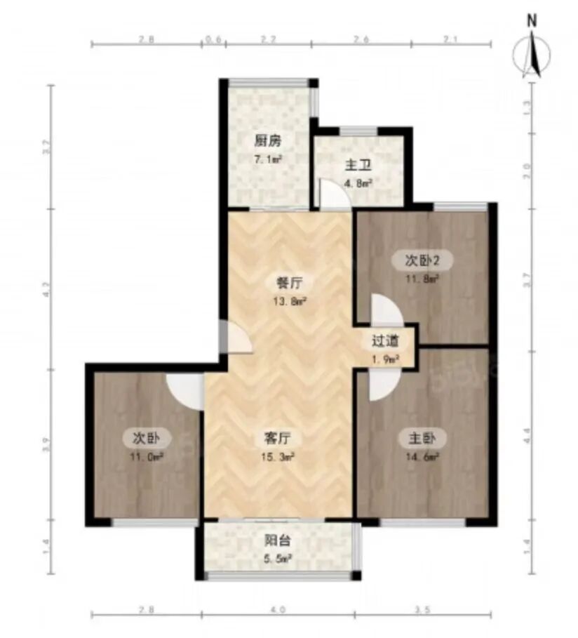 约105平3房↓