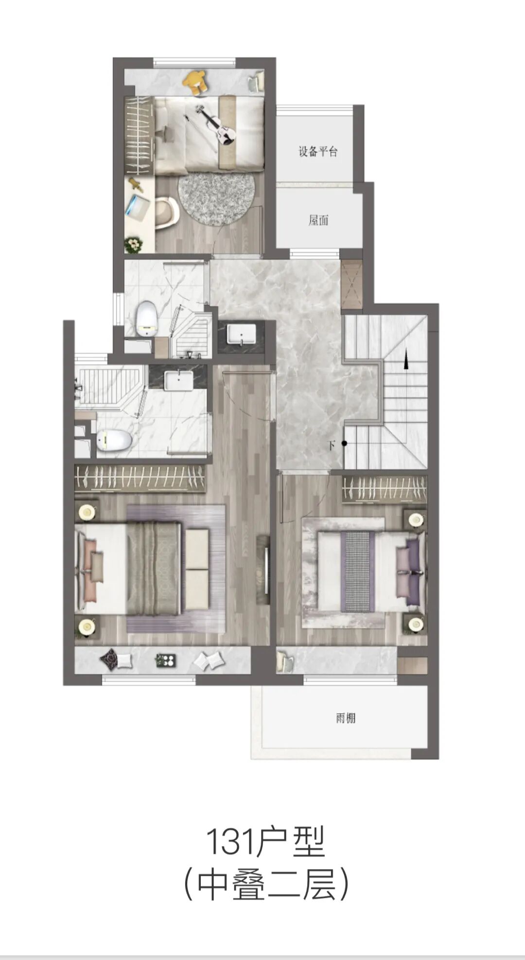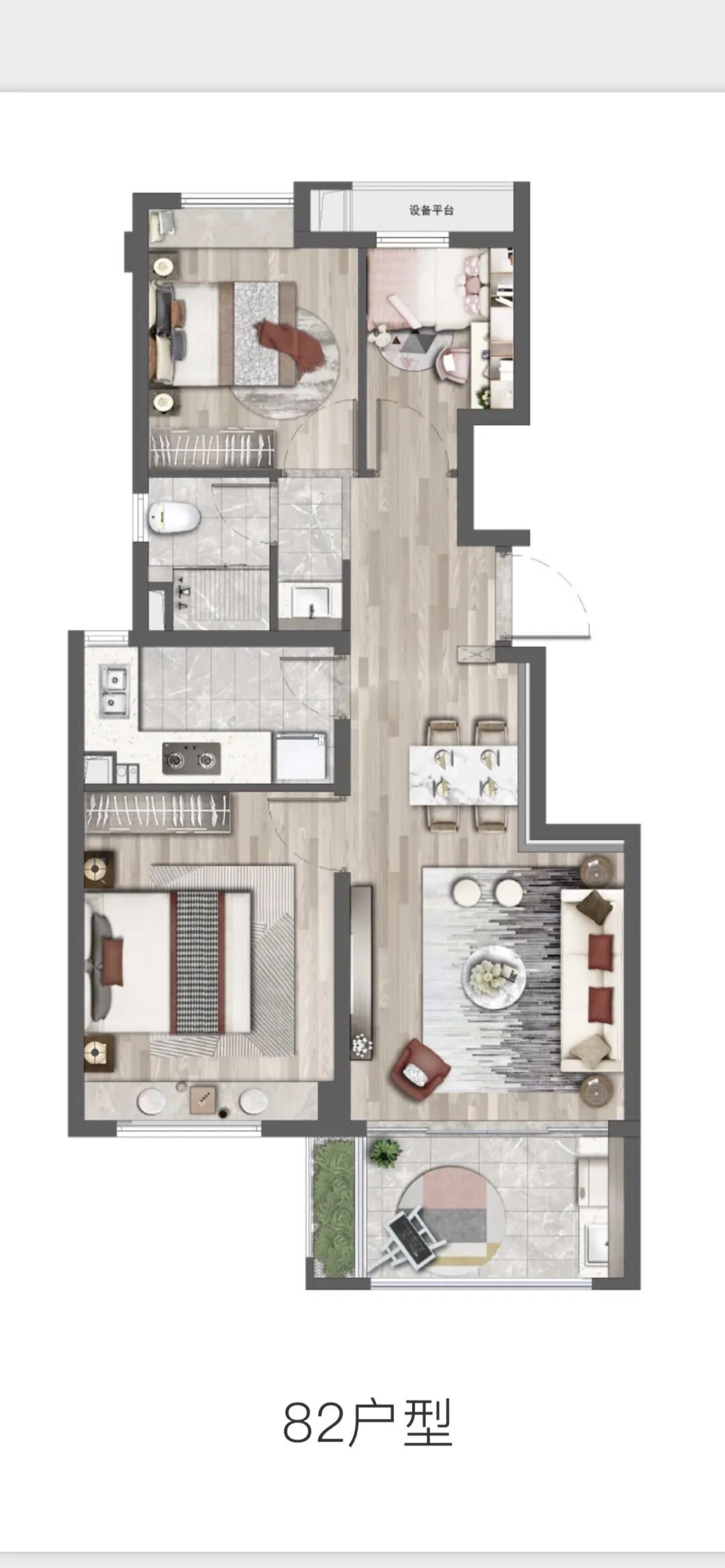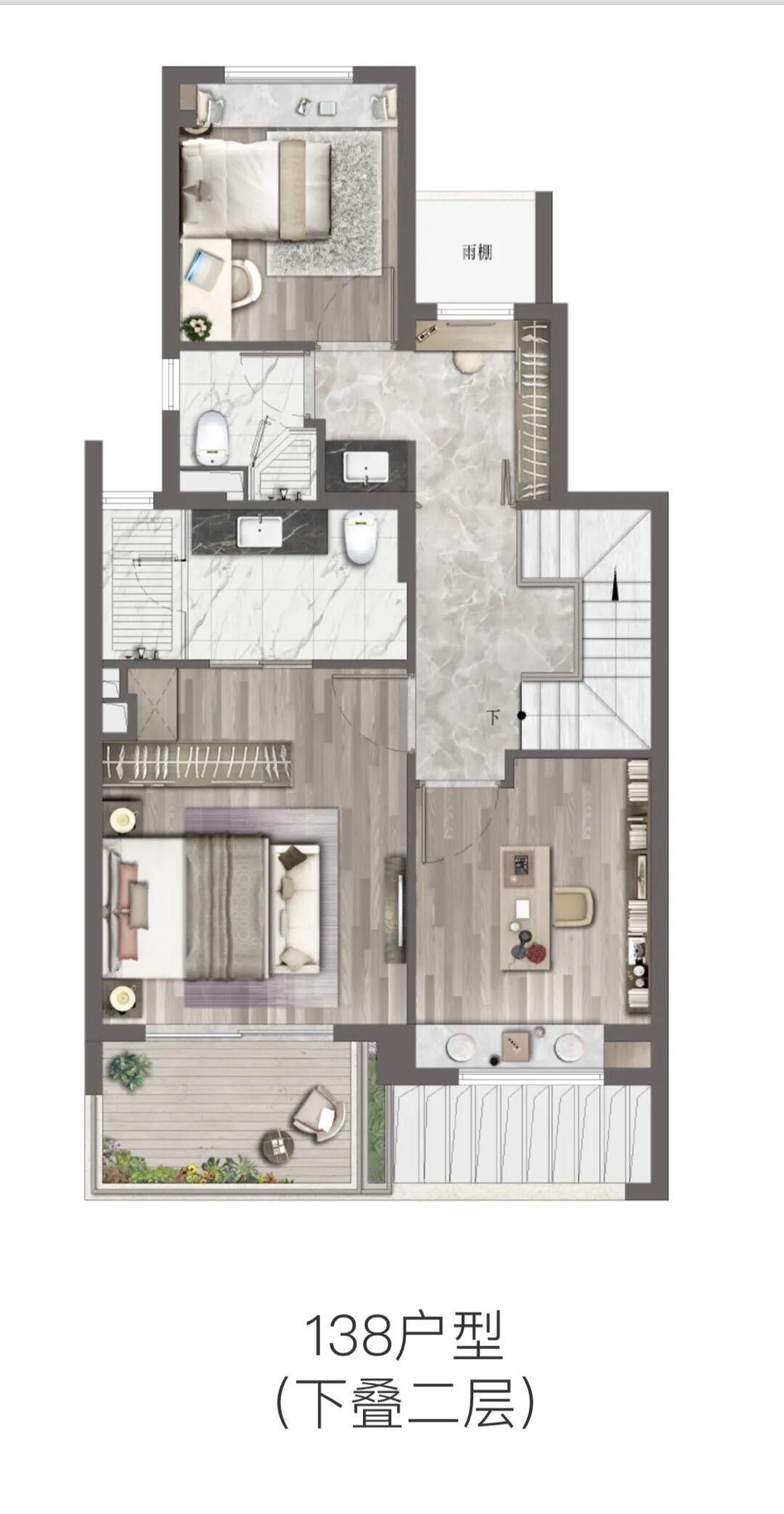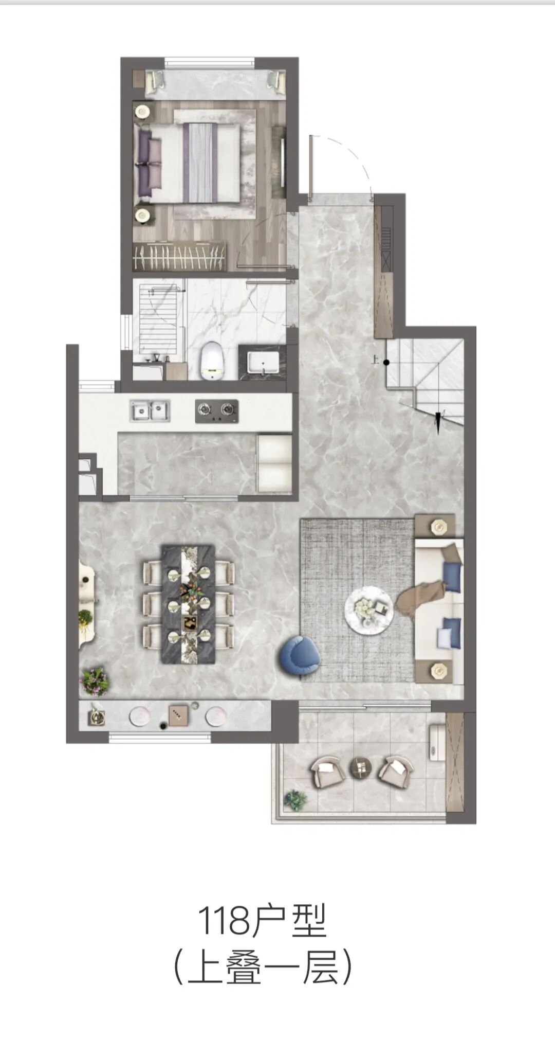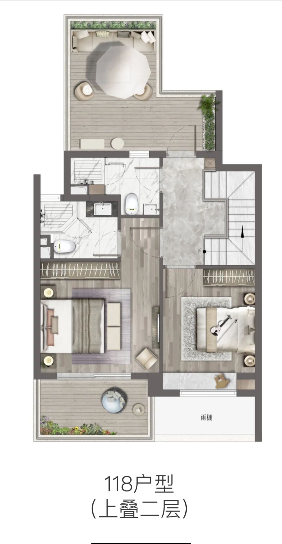 洋房556户,建筑面积约82-110㎡;叠加别墅180户,建筑面积约118-138㎡。