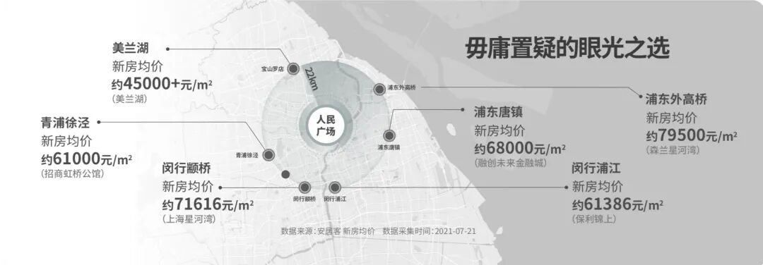 主城区以人民广场为圆心,同距离辐射圈22km内,最高均价约7.9万/㎡,美兰湖板块相较同等距离的区域有一定的价格优势。