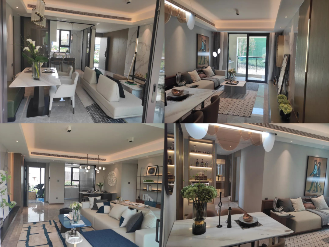浦发虹湾由浦发集团匠心打造,这是一家与浦东开发同频共振的城市运营商,20余年来紧随浦东改革开放的浪潮,足迹遍布浦东新区。浦发珊瑚世纪、浦发壹滨江、浦发檀府、浦发东悦城等众多项目,在市场都有口皆碑。浦发虹湾,位于龙东大道和华东路的交汇处,所处的整个区域,四面环水,就如同一座漂浮在水面上的“环屿之城”。整个区域以九宫格的布局展开,涵盖了住宅+商业+教育配套,项目继承经典海派的建筑风格,通过外立面层次的打造和立面细节的打磨,使得小区外观更有现代感。社区采用人车分流,在保证家里的老人和小孩安全的前提下,也减少了汽车尾气对小区里面的绿化造成污染。建筑布局程“南低北高,东低西高”的布局方式,这样的布局设计,既保证了叠墅居住私密性的同时,也不影响小高层的采光,而且整个小区也能最大化享受到沿河景观资源。社区景观以“高层为园,多层为巷,巷园共生”的空间结构,通过对空间层级的合理规划布局从尊崇感的社区入口进入至轴线领域,宅间花园包含生活内核,静怡的巷道空间彰显高贵品质。小区入口以“U型围合式空间”配合酒店式入户大门,打造五星级归家体验,门口设计了酒店式水景落客区,便利业主打车或临时停车的同时,也彰显了高品质精致生活。进入社区入口后,每条归家主干道上,采用常绿和落叶植物搭配种植,色彩随季节变化而变化,通过主轴串联各类活动交流空间,带给人不同的意境。高层区域以运动邻里及社交邻里两个主题,集合亲子室外活动,儿童玩耍,老年社交,青年运动等多种功能,成为社区的活力空间;叠墅区域的归家步行道设计成蜿蜒状,保证了私密性的同时,也可以在归家途中享受到四季的景色而且在叠墅区设计了用绿篱围绕成的公共绿地,可以让业主享受更大的景观面。三大件标配:日立的中央空调、霍尼韦尔的新风、地暖,弗兰卡的厨电、嵌入式烤箱、水槽龙头,卫生间是TOTO的卫浴,客餐厅的墙面都是墙布。