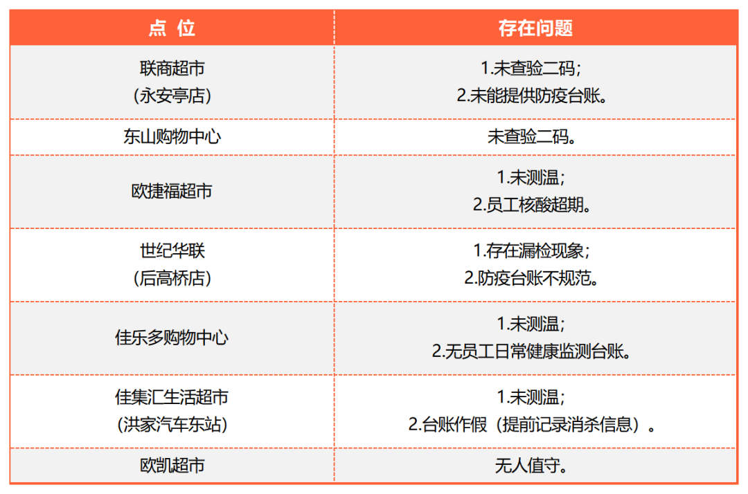 10月16日,椒江区疫情防控指挥部纪律督导组重点督查商超、农贸市场、专业市场等重点场所,发现部分场所存在“未查验二码”等问题,予以停业整顿,现将具体问题公告如下: