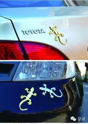 壁虎属于非常可以贴的,和川藏线一样,适合贴在廉价SUV甚至两厢车上,三厢也可以,但没两箱效果好,壁虎,谐音“避祸”,最早是人家奥迪全时四驱的标志,后来被我国广泛使用,贴上这个和川藏线的效果一样,向全世界宣告你是傻逼,而且是个把两驱哈弗当路虎开的巨型傻逼——试问谁不害怕这样的傻逼?