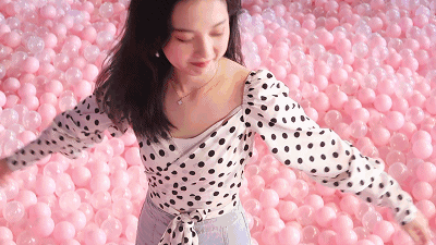 终于到泡泡池啦!满池子的粉白球,正是ins上最火的地方!超级适合拍照啦!